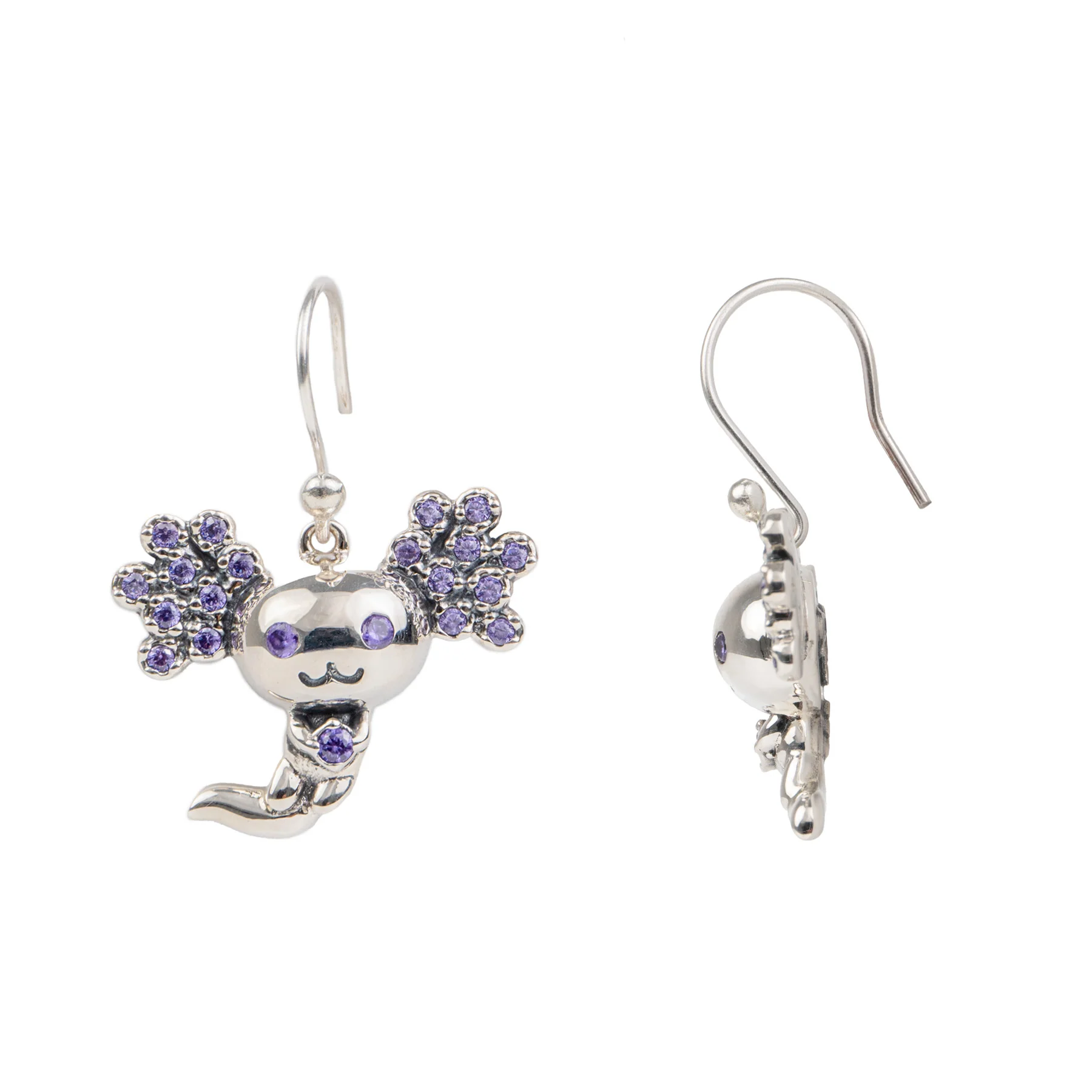Estos encantadores pendientes con pasador, con la forma de un ajolotito, están hechos de plata ley 925. Lucen incrustaciones de brillantes circonias en tonalidad violeta, ofreciendo una combinación perfecta de elegancia y durabilidad. El cierre de gancho asegura que se mantengan seguros en tus orejas durante todo el día.