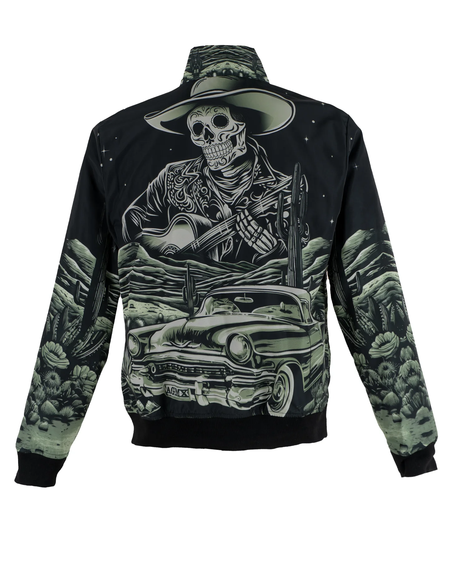 La chamarra Bomber "La Noche" es una pieza reversible que cuenta una historia de misterio y música.