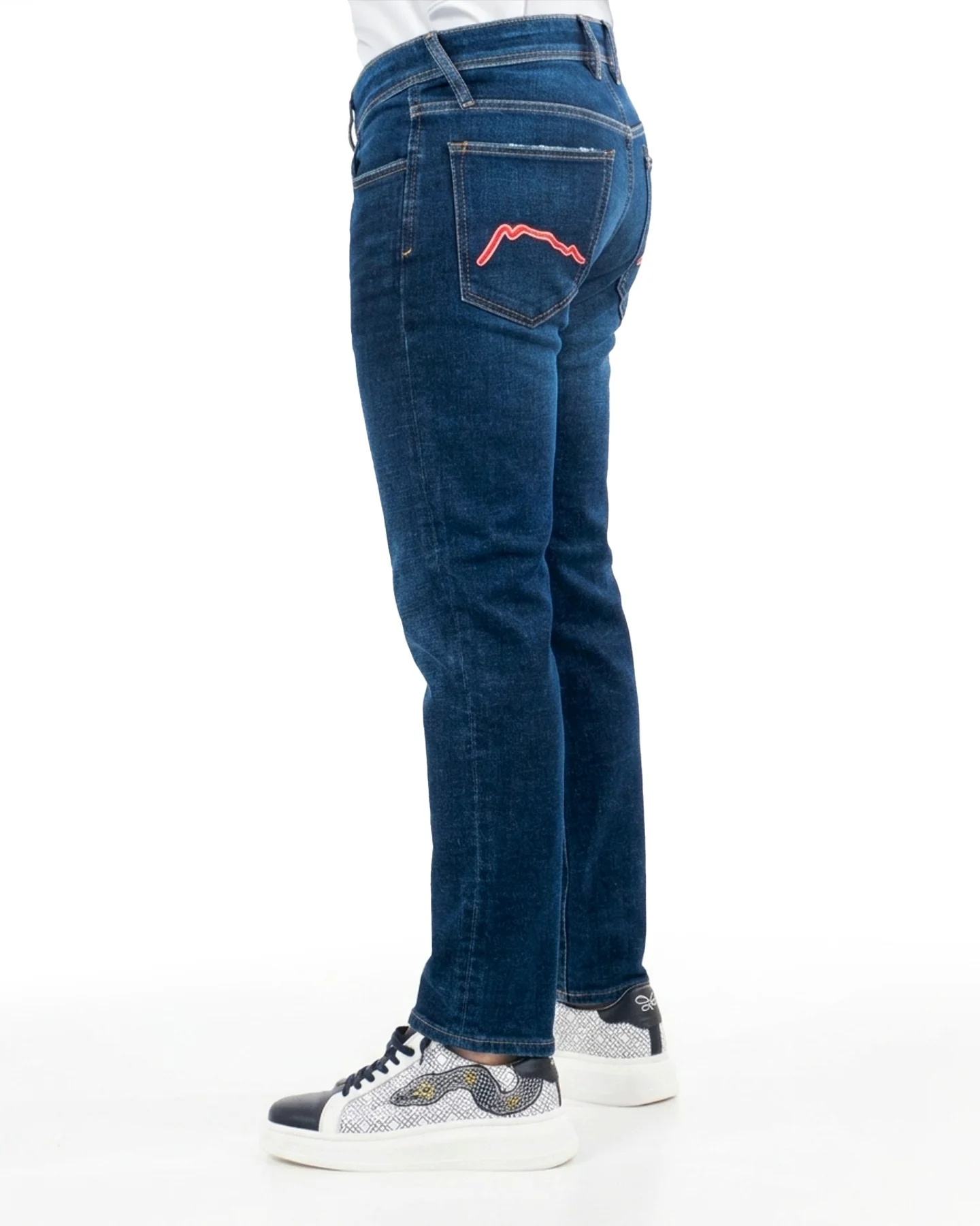 Bordado de alto relieve en los bolsillos que dibuja la silueta de los volcanes. Su corte recto y lavado profundo equilibran resistencia y estilo, ofreciendo una pieza con identidad propia. Una prenda diseñada para durar, con acabados que proyectan fuerza en cada paso.