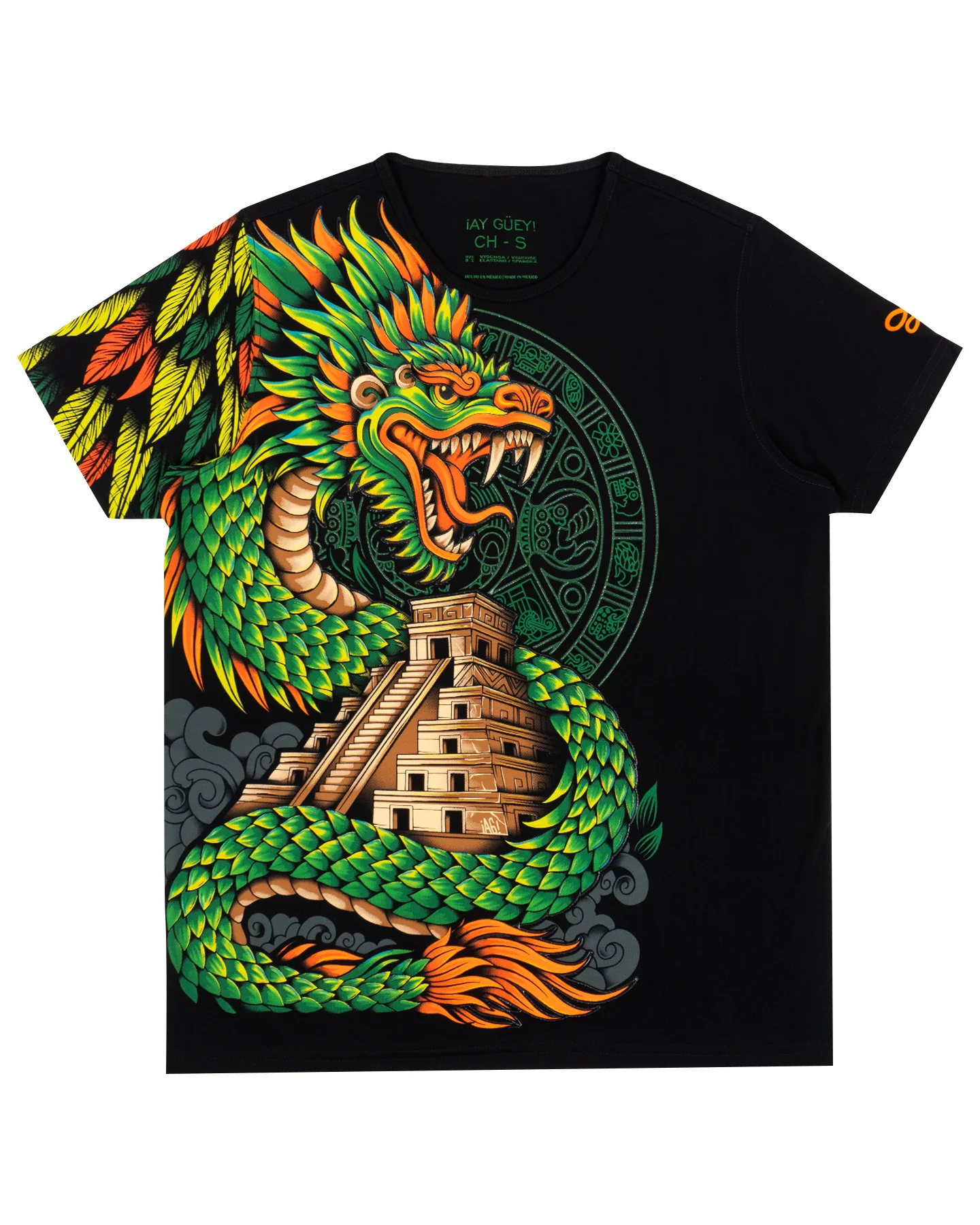 Más que una prenda, el modelo Maya es un portal al misticismo del sureste mexicano. Captura la fuerza vital de Kukulkán, llevarla es despertar la energía ancestral y conectar con la grandeza de una civilización legendaria, manifestada en una explosión de vida y color que emerge poderosamente sobre el fondo oscuro.