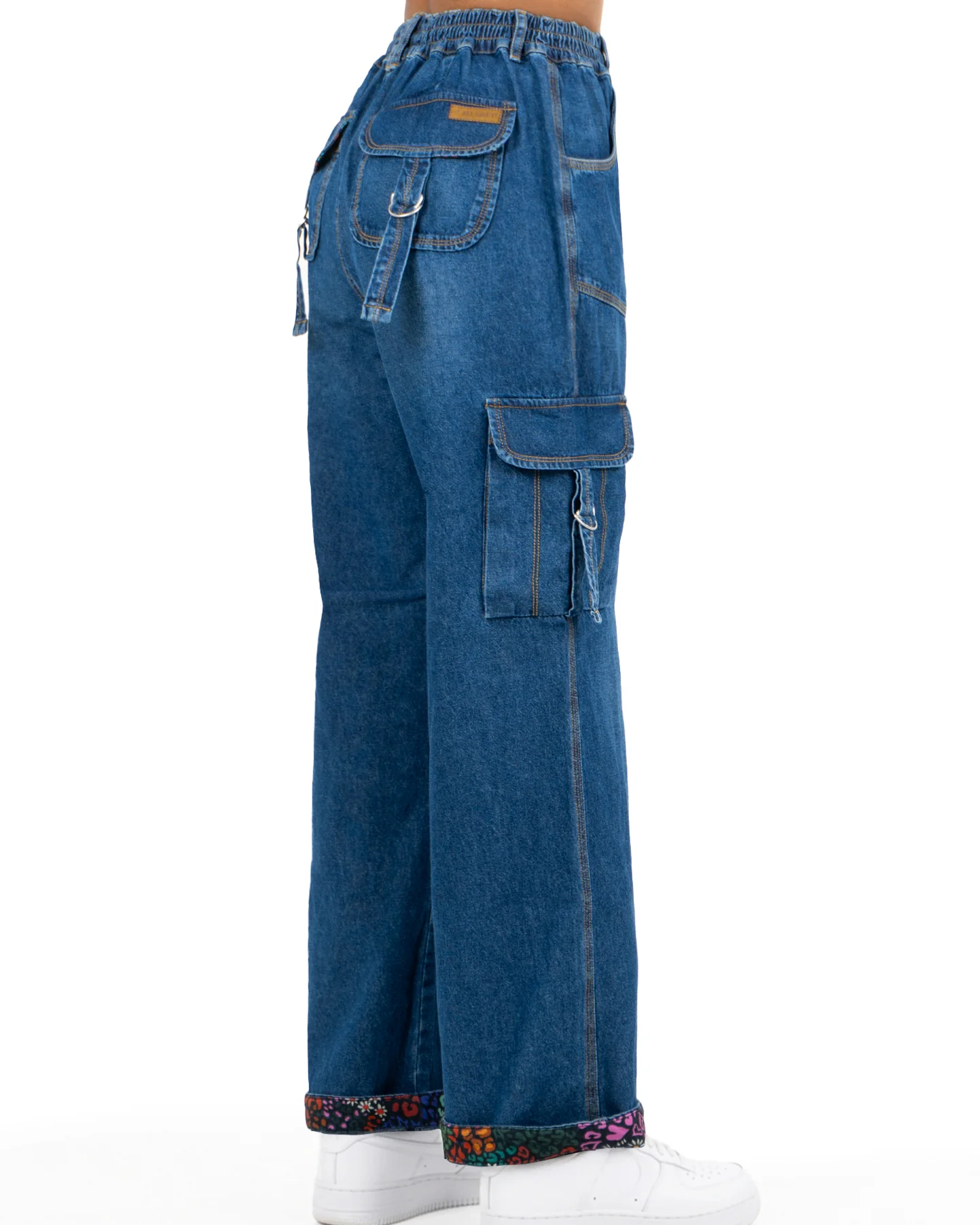 Un tapiz de detalles artesanales. Estos pantalones de pierna ancha con bolsillos cargo generosos son el equilibrio perfecto entre utilidad y estilo personal.