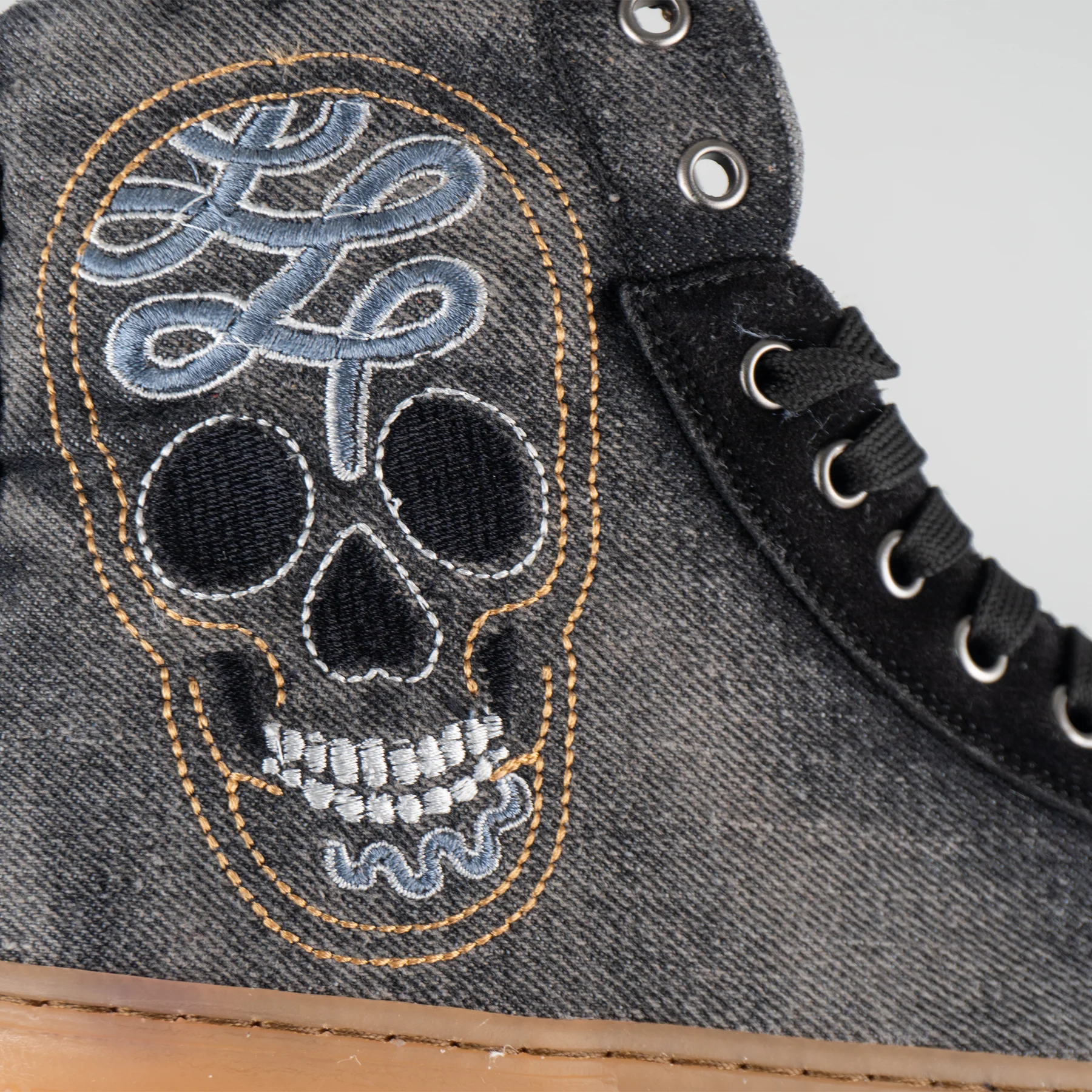 Descubre la fusión perfecta entre tradición y tendencia con nuestros tenis de bota. La mezclilla y la suela de liga se unen en un diseño audaz, adornado con calaveras de azúcar bordadas que rinden homenaje a nuestras raíces mexicanas. Un calzado que combina comodidad y estilo, hecho para los espíritus libres.